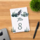 Elegant forest theme wedding table number card featuring beautiful mountains and pine trees,