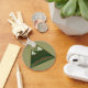 Cool green design of alpine hills with the word moutaineering in a wood color