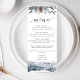 Mountains and Fox, Rustic Blue Floral Wedding Menu