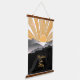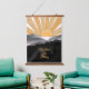 Wood topped Wall Tapestry, a rustic touch with vivid sunrise/sunset colours on mountain silhouette. The illustration features bright orange, burnt sienna sun rays on a dark mountain backdrop. Just right for 'home decor' / 'wall art' / 'home accent' to brighten your walls. The TEXT is customizable with your choice of font & script.