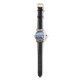 Has heft and feel of expensive stainless steel quartz watches. Good band with safety catch. I removed links, which is easy because engraved arrows show direction to push the linking pins. As always by this seller, the image (a railroad logo) is a perfect reproduction of my emailed image, and is precisely spaced and aligned.