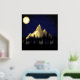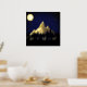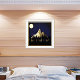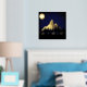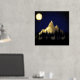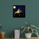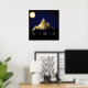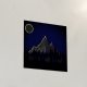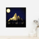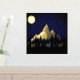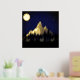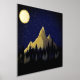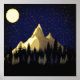 Nighttime foil print featuring tall mountains and pine trees, by moonlight. The gold accents against the deep blue of the mountains has a cool relaxing feeling great for any room of the house or office.