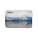 A digital painting of snow-capped mountains on the shores of Lake Pend Oreille (pond oray) at Sandpoint, Idaho on a late winter day. Customizable text reading "IDAHO" also appears.