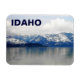A digital painting of snow-capped mountains on the shores of Lake Pend Oreille (pond oray) at Sandpoint, Idaho on a late winter day. Customizable text reading "IDAHO" also appears.