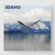 A digital painting of snow-capped mountains on the shores of Lake Pend Oreille (pond oray) at Sandpoint, Idaho on a late winter day. Customizable text reading, "IDAHO" also appears.