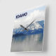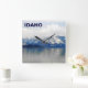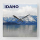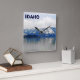 A digital painting of snow-capped mountains on the shores of Lake Pend Oreille (pond oray) at Sandpoint, Idaho on a late winter day. Text reading "IDAHO" also appears.