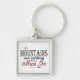 This square keychain features a popular typography design that says 'The mountains are calling and I must go.', which is a famous quote by Naturalist John Muir. The words are different fonts and different colors of sky blue, forest green and dark red. Show your love for the mountains! There are other key chain styles to choose from.
