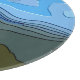 A bright, colourful abstract design of a mountain view, with blue sky, rock and trees.
