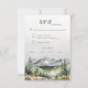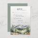 This beautiful simple rustic adventure begins wedding RSVP card features watercolor painted mountains, forest landscape and lovely sage green backing, perfect for fall, winter or destination wedding. Personalize it with the details of your wedding day.