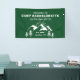 Camp Bachelorette welcome banner with mountains and a forest in green and white colors. Customize it with the name of the bride-to-be, established date, location, and any message you'd like to add. The example reads "Last trail before the veil".