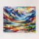 Trendy Contemporary AI Generated Colorful Abstract Mountains Landscape Oil Painting Modern Yellow Green Blue Red Purple Horizontal Puzzle.