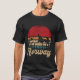 My 11 yo wore adult XL (5’7” 165#). The 8yo is small framed. She wore adult small and tied it in the back. Grandma wore adult large with long sleeve shirt underneath. Tall girl adult medium. Dark haired male adult large. Good quality dark Heather gray, Gildan brand shirt. -it was next up from basic choice and cost about $20 per shirt. Not too thick or thin. Washed and dried well, no major shrinkage. Not see-through. Can wear a bra under it fine. Screen print is just as shown and well done, front and back.