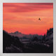 Mountains Orange Sunset Bird in Sky Poster