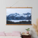 Winter landscape photograph of a stunning scenery of mountains rising above the clouds and forest in front.