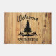 Doormat designed for the family mountain home. Silhouette of mountains and palm trees, customized with your family name on a rustic-wood design background. Perfect for your mountain home/vacation rental. Or customize your text for any use.