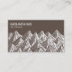 A business card template with an original hand drawn woodcut print style mountains design on the front. Company name and business type on the front with name and other contact details on the reverse. In this version the white areas of the mountains vector drawing are opaque, so changing the background color will change the color of the drawing.