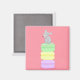 Mouse and macarons. Cute gray mouse on stack of pastel green, yellow, and lavender macarons on pink.