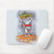 Mouse holding a leaf for an umbrella in the rain on a mouse pad. Appropriate huh?