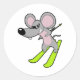 Mouse as Skier with Ski Classic Round Sticker