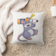 Mouse at Cricket with Cricket bat Throw Pillow