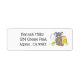 Some white return address labels for everyday use , with a gray cartoon mouse eating a chunk a yummy Swiss cheese . There are a couple of edelweiss flowers . too . Replace text with your own . Also available in yellow .