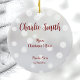 Lightweight, smooth, pure white ornament with nice sheen. Perfect size to be seen from across the room ... and to attract closer inspection! Price was great for ordering enough for the whole family! Clear, bold black design just as requested. Matches the order exactly. Just so nice!