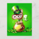 Mouse in pot of gold holding pint of green beer postcard