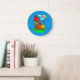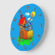Mouse living in a shoe, with the sun smiling down on the mouse. Nursery image depicting a mouse sitting on the toe of a boot or a shoe, the mouse blue a ribbon tied into a bow on its head. It's a happy picture that is brightly colored. Predominant colors are green, red, brown, blue, yellow and grey of the mouse.