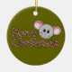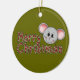 A little gray mouse and red and green candy cane striped text that reads "Merry Christmas" on a keepsake holiday ornament that you can change the shape of before ordering.