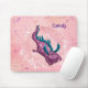 Mouse Pad for child with an illustrated dragon, pink background with polka dots and hearts. The name can be changed, or removed. Thanks to Creative Fabrica for some of the elements in the design.