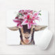 Digital art of a goat wearing Stargazer lilies and lily-of-the-valley on its head.