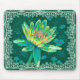 Mouse pad with a designer Water Lily in hunter green with a turquoise and yellow water lily surrounded by flowers and faux lace. Pretty and colorful to brighten your office, or home. Thanks to the Hungryjpeg and Commercial Use Scraps for some of the elements in the design.