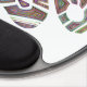 The plastic backing is nice and sturdy. The grippy pads underneath keep the mouse pad where I put it on my table. The pad the mouse sits on is cut well to fit the backing. The wrist pad is perfectly soft, supportive, and thick. I'm left-handed, and this mouse pad works just as well for me as it does for my right-handed friends. I'm the designer of HippieClecticHope products. I'm blown away by how well my intricate fractals turn out on the tangible items in the Zazzle Marketplace. This particular mouse pad ***appears*** like a 3D object... A mathematically-engineered rainbow black opal, inlaid under transparent fabric...