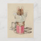This postcard is a reproduction of a vintage illustration showing a mouse reading a newspaper called "The Tailor" while sitting on a spool of thread, with scissors and a thimble in the background.