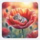 Mouse Sleeping In a Red Poppy Flower Square Sticker