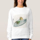 A color pencil drawing of a mouse and a warm slipper adorns this fun shirt.