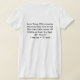 My overall review is that the T-shirt is nice, it fits true to size however the font is significantly smaller than advertised and you can't read it. The printing is unreadable and there is a strain to read it. It does not look like the advertised product. Maybe the shirt color is darker or a larger more visible font should have been used. Photos with and without flash and font is barely legible.