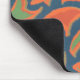 Mousepad in all-over repeating pattern of oranges, and green on a dark blue background