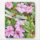 Vibrant watercolor mouse pad featuring serene floral with dragonfly alight on the leaves, rich colors, peaceful.