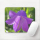 Eine grosse lila Glockenblumenblüte vor grünem Wiesenhintergrund ist auf diesem Mousepad.