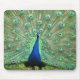 This proud peacock is all "eyes" for your mouse. The bright green feathers are accented with the royal blue centers and the head and body feathers of blue.