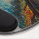 The plastic backing is nice and sturdy. The grippy pads underneath keep the mouse pad where I put it on my table. The pad the mouse sits on is cut well to fit the backing. The wrist pad is perfectly soft, supportive, and thick. I'm left-handed, and this mouse pad works just as well for me as it does for my right-handed friends. I'm the designer of HippieClecticHope products. I'm blown away by how well my intricate fractals turn out on the tangible items in the Zazzle Marketplace. This particular mouse pad ***appears*** like a 3D object... A mathematically-engineered rainbow black opal, inlaid under transparent fabric...