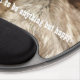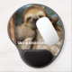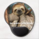 A gel mousepad with a picture of a three-toed sloth sleeping in a tree.