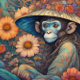 Beautiful and mystical fun chimp monkey with flowery hat. Perfect for all your decoupage projects and furniture transformation decoupage transferts.
