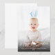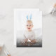 A darker gradient appears at the bottom of the card so the white text stands out more. It reads “Happy Easter” in a modern script font with a cute bunny silhouette separating the words. Below that is a personalizable text area where you can add a name, playfully calling the child or person in the photo the Easter Bunny, along with the year.