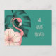Moved to Florida Pink Flamingo Monstera Leaf Announcement Postcard