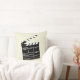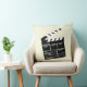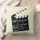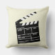 Fun Movie Director Clap Clapper Clapperboard Design Throw Pillow. Light beige pillow with a big black and white movie clapperboard. You ca customise and change the background colour to whatever suits your decor.