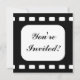 Share the news of a movie night with this fun, movie themed invite. A square piece of black and white film is filled with the information for your party. Simply type in the correct information.