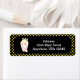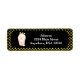 This return address label features your address or other custom text in white text over a black background. A bucket of buttered popcorn sits to the left of the address. The border of the label is a repeating pattern of yellow stars over a black background.