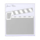 This design features a black and white slate clapperboard that you'd find used on a movie or TV set, used to indicate the start of a 'take'; the filming of a scene and used to allow sound and video to be synchronized at the editing stage.